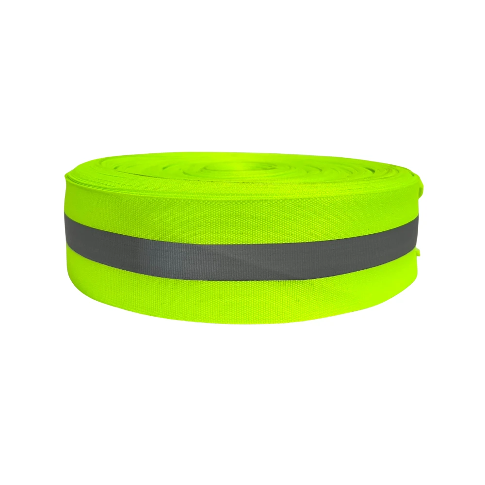 La Cinta Reflejante Bicolor Amarilla está confeccionada con materiales de alta calidad, siendo 100% poliéster. Su modelo webbing la hace resistente y durable. La cinta cuenta con una reflectividad gris de máxima calidad, con un valor de reflectividad R>280. Disponible en rollos de 50 metros y 100 metros. Este producto es ideal para aplicaciones que requieren visibilidad y seguridad, como señalización y uso industrial.